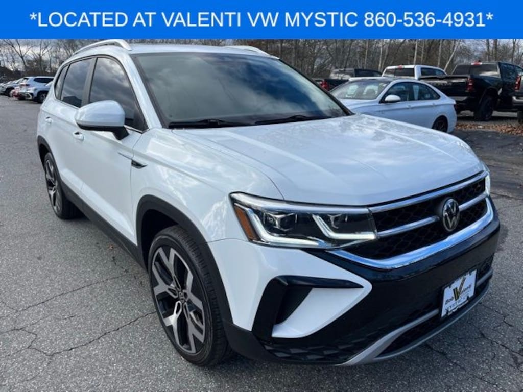 VW CERTIFIED 2 Year/24,000 Mile Warranty, Located at our Mystic VW location. CARFAX One-Owner. Clean CARFAX. Pure White 2023 Volkswagen Taos 1.5T SEL AWD 7-Speed DSG Automatic with Tiptronic 1.5L I4 Turbocharged DOHC 16V LEV3-SULEV30 158hp