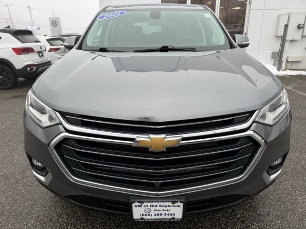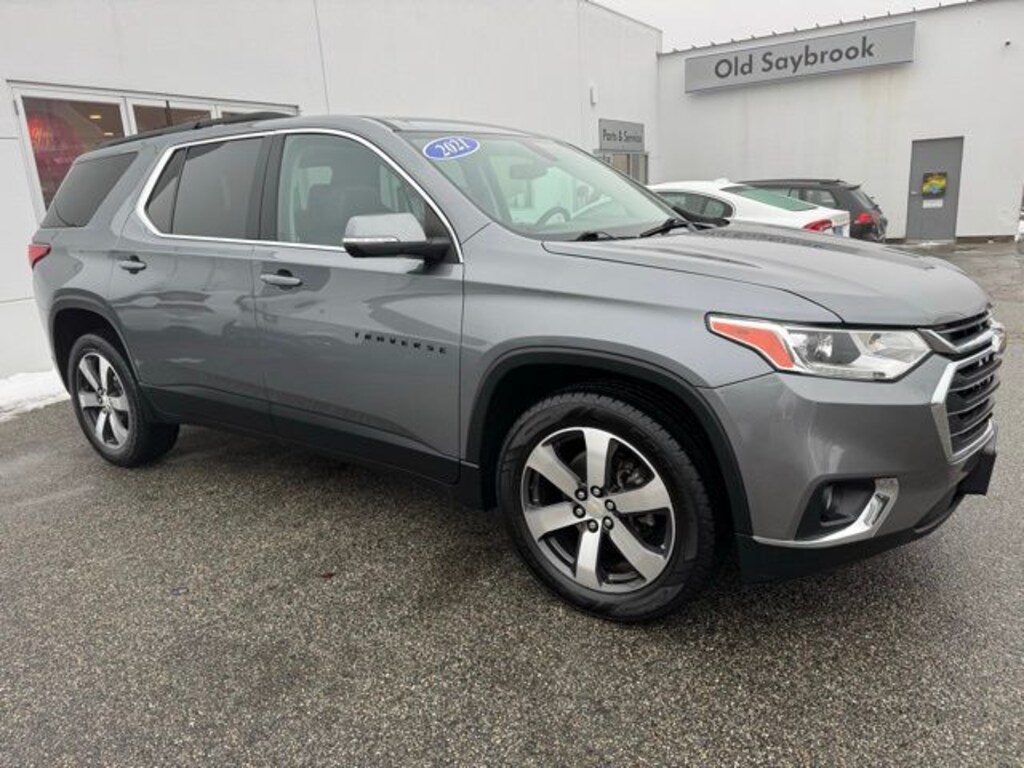 Located at Old Saybrook Volkswagen, Traverse LT Leather, 4D Sport Utility, 3.6L V6 SIDI VVT, AWD, Jet Black/Dark Galvanized Leather, 120-Volt Power Outlet, 3rd row seats: split-bench, 4-Wheel Disc Brakes, 7-Passenger Seating (2-2-3 Seating Configuration), ABS brakes, Apple CarPlay/Android Auto, Bose Premium 10-Speaker Audio System Feature, Brake assist, Dual SkyScape 2-Panel Power Sunroof, Electronic Stability Control, Emergency communication system: OnStar and Chevrolet connected services capable, Four wheel independent suspension, HD Surround Vision, Heated door mirrors, Heated front seats, LT Premium Package, Navigation System, Preferred Equipment Group 3LT, Premium audio system: Chevrolet MyLink, Radio: Chevrolet Infotainment 3 Premium System, Rear Camera Mirror, Steering wheel mounted audio controls, Wheels: 20" Machined Face Aluminum. Satin Steel Metallic 2021 Chevrolet Traverse LT Leather AWD 9-Speed Automatic 3.6L V6 SIDI VVT